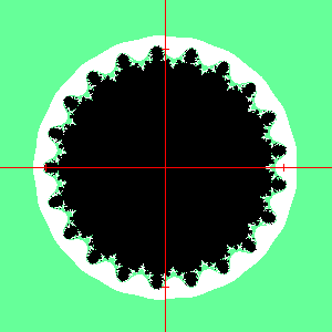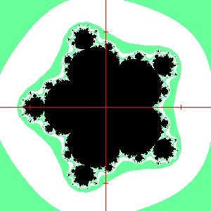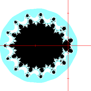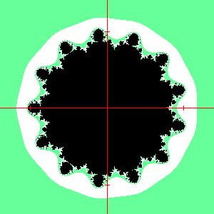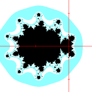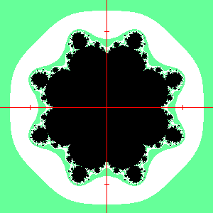 It follows that the dihedral group of order (2n-2), generated by a primitive (n-1)st root of unity and complex conjugation, acts on the generalized Mandelbrot set. It can be seen from the pictures below that the symmetry group of the generalized Mandelbrot set is the dihedral group of order (2n-2).