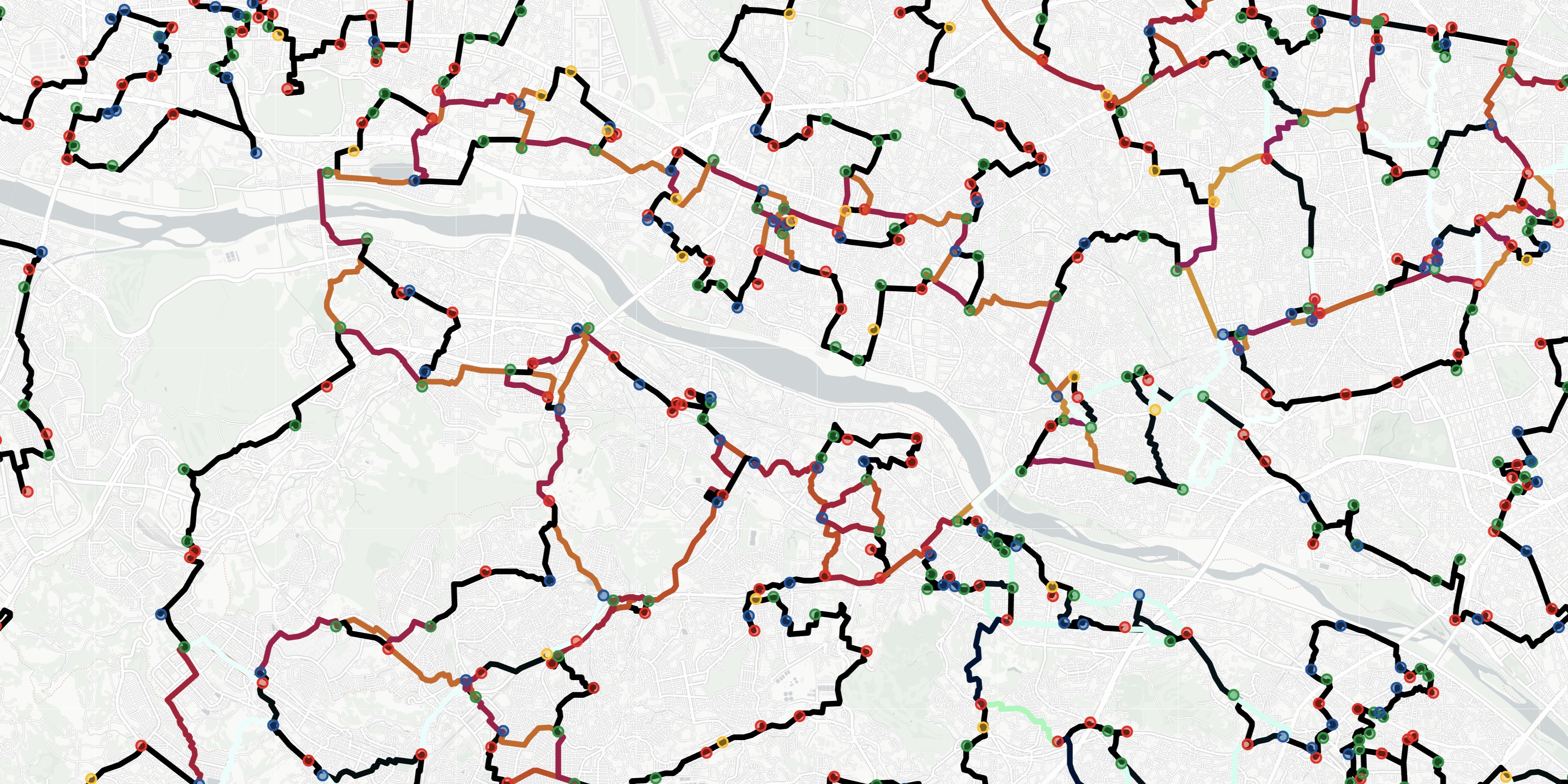 The tour map-drawings were created with the Leaflet open-source JavaScript library for mobile-friendly interactive maps and make use of map tiles built by OpenStreetMap, by Carto Basemaps and by Stadia Maps.