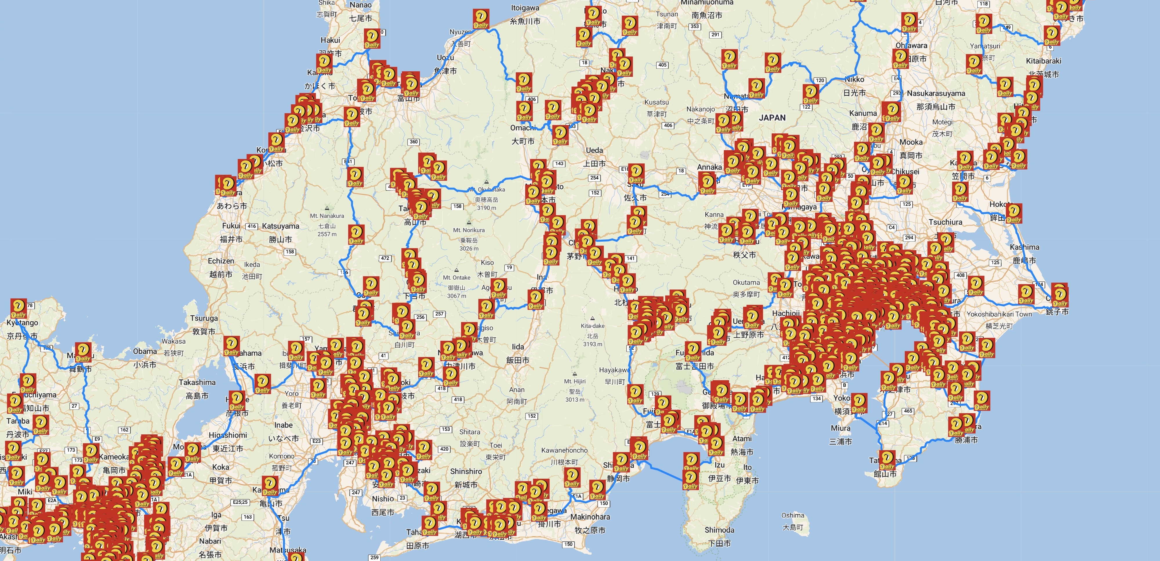 The locations of the roadside stations were obtained from the official Michi-no-Eki web site.