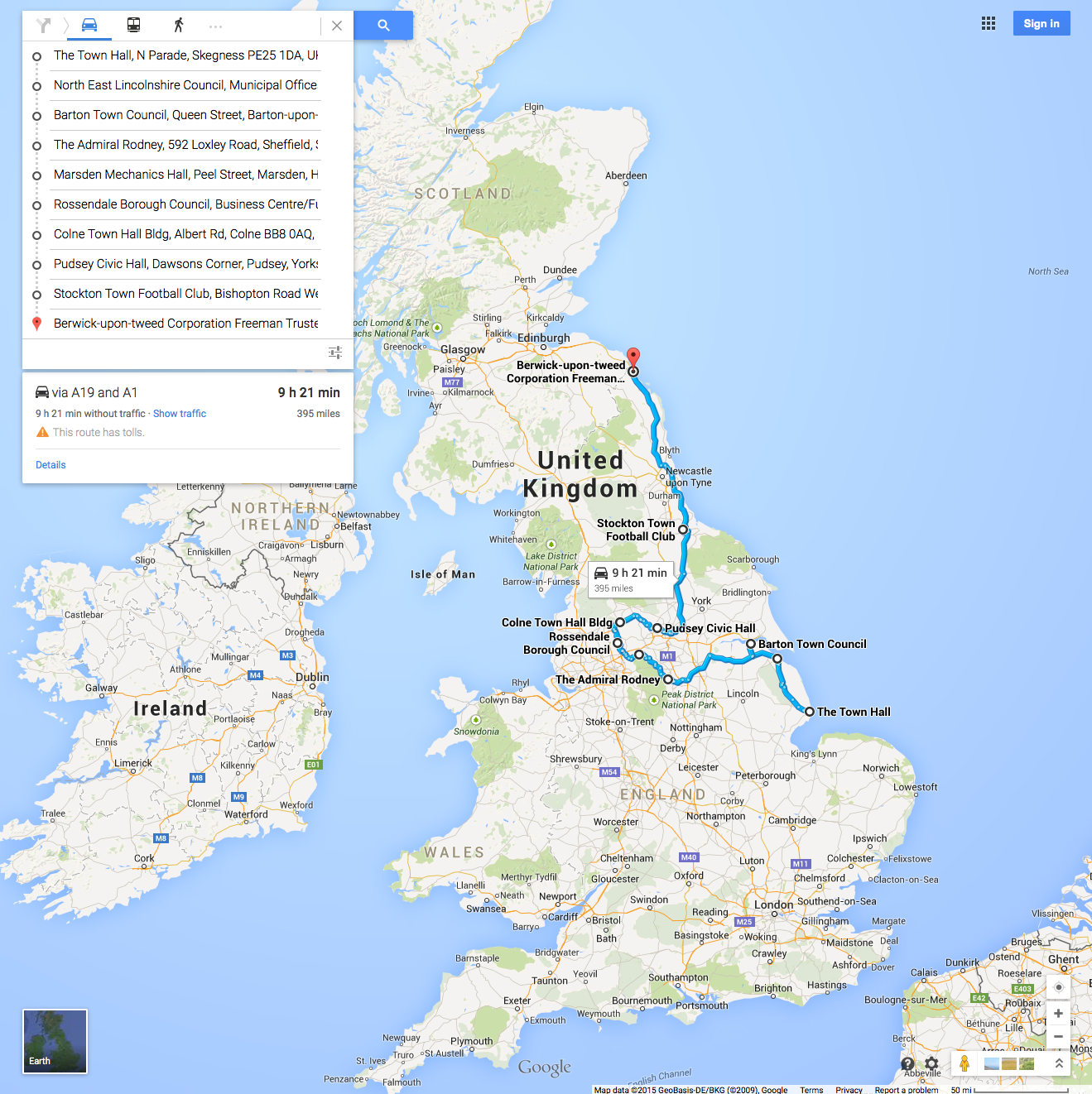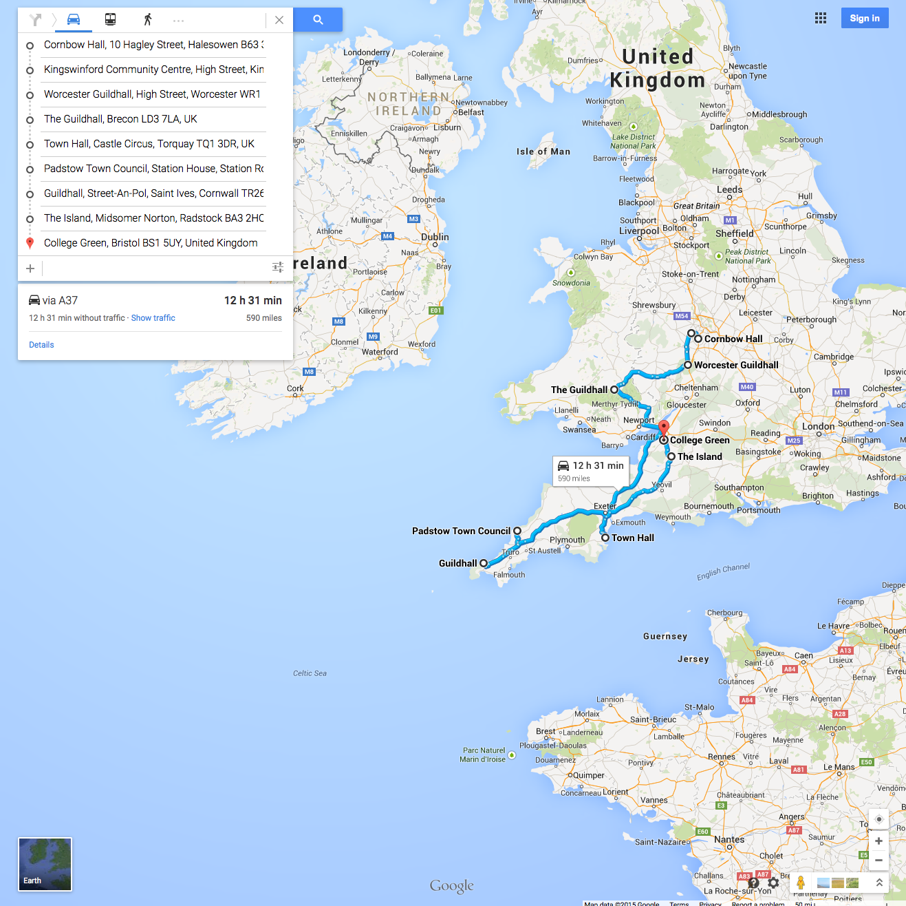 Tour of 50 Key Districts in 2015 UK Election UK50 -- Google Map of the recommended tour Legs of the UK50 tour
