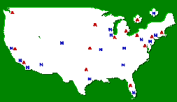 A baseball fan found the optimal route to visit all 30 Major League Baseball parks using Concorde's solver. The data for the problem can be found in the file mlb30.tsp (the data set is in TSPLIB format). The map above is a link to an interesting site devoted to current and past ballparks.