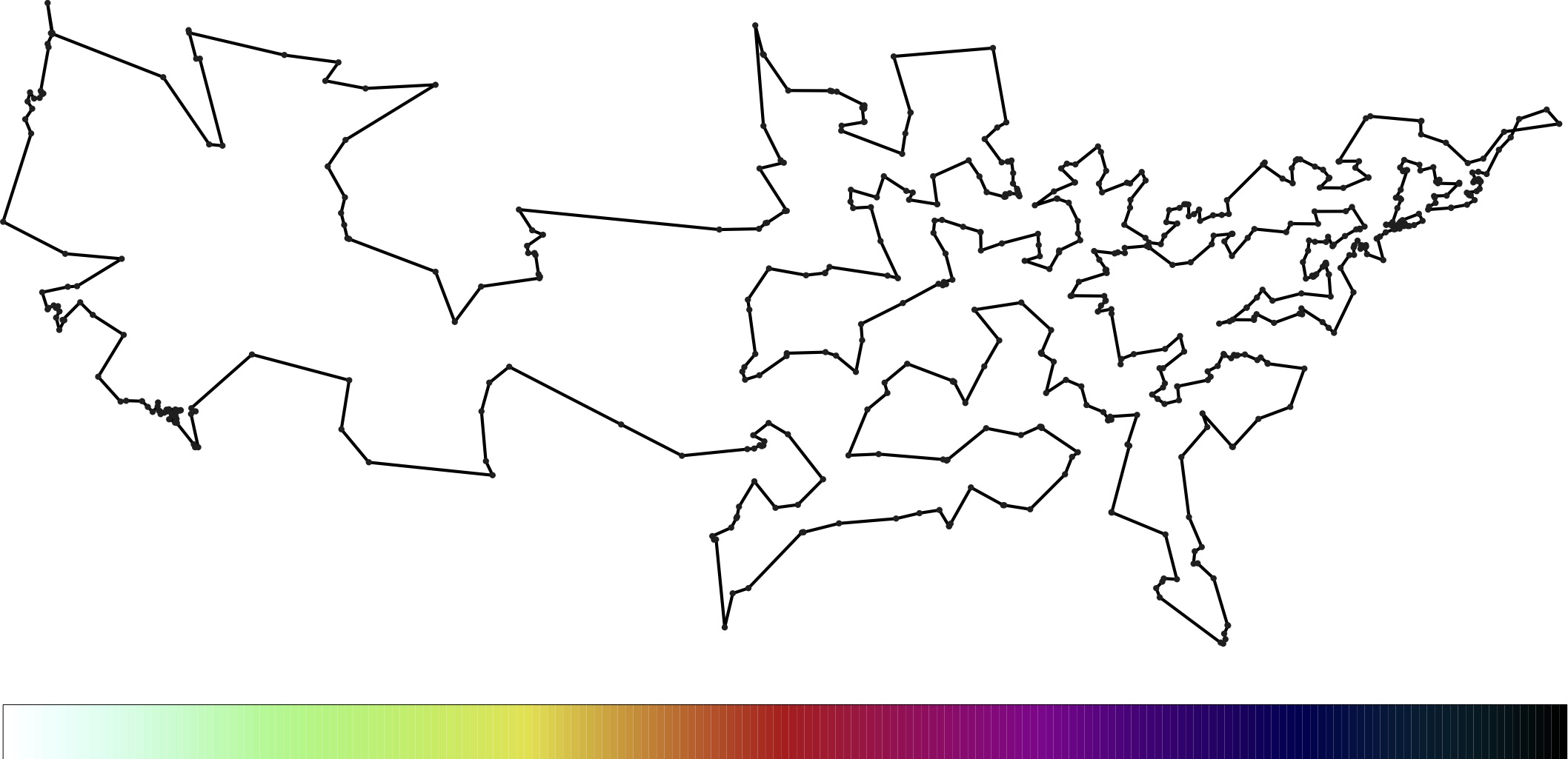 The overall technique can certainly scale up to even larger road trips. Not that anyone really wants to spend a few months out on the road, but what the heck. New challenges can lead to interesting math and engineering. So please drop me a line if you know a couple of thousand nice locations for a TSP tour.
