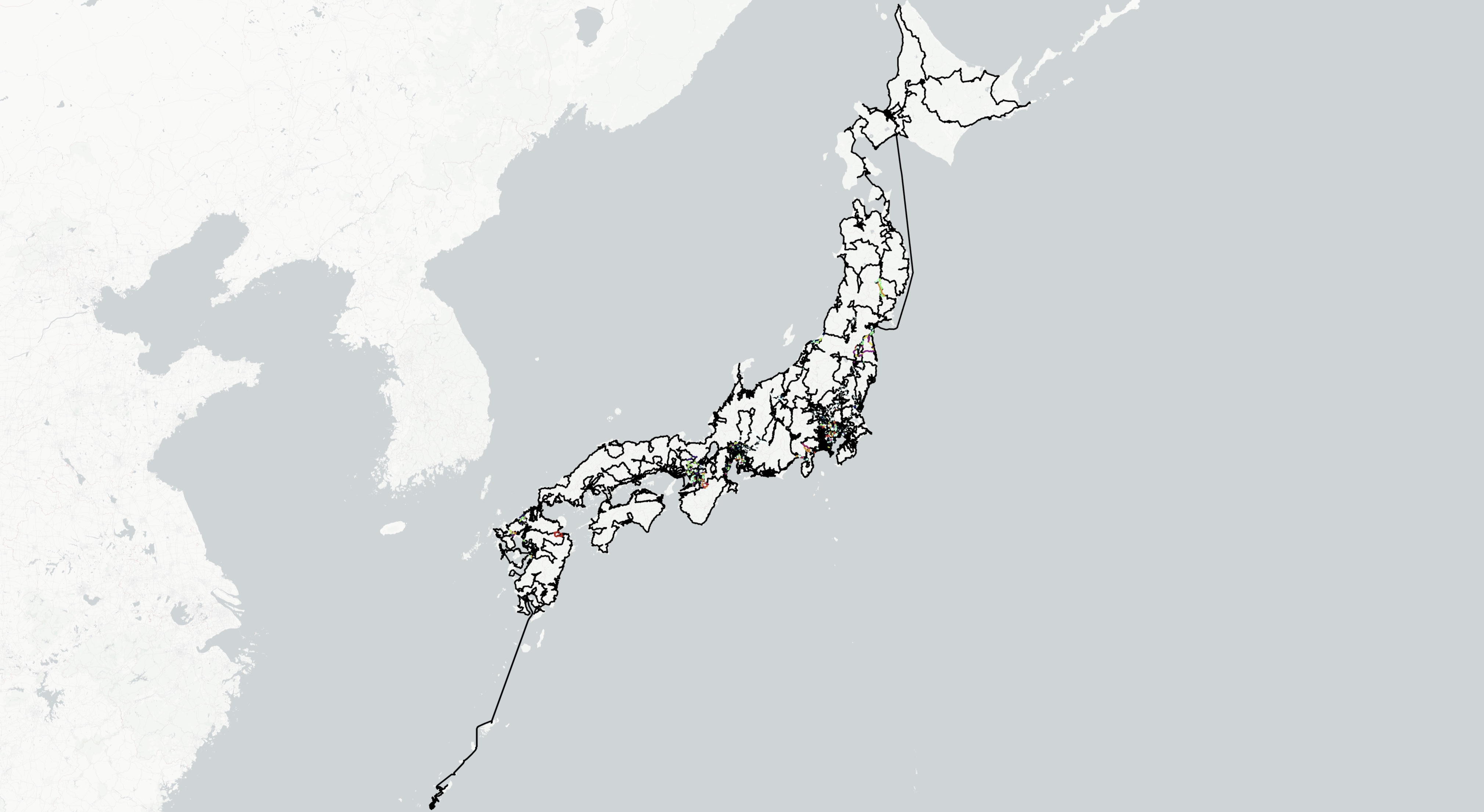 You can see in the full-Japan image that many of the edges are black, meaning the LP rules we added have done a good job restricting the values assigned to links. But there are colorful regions, such as in the second image, where more work is needed. In our computation, we combine the cutting-plane method with a branch-and-bound search to handle these regions of the LP solution.