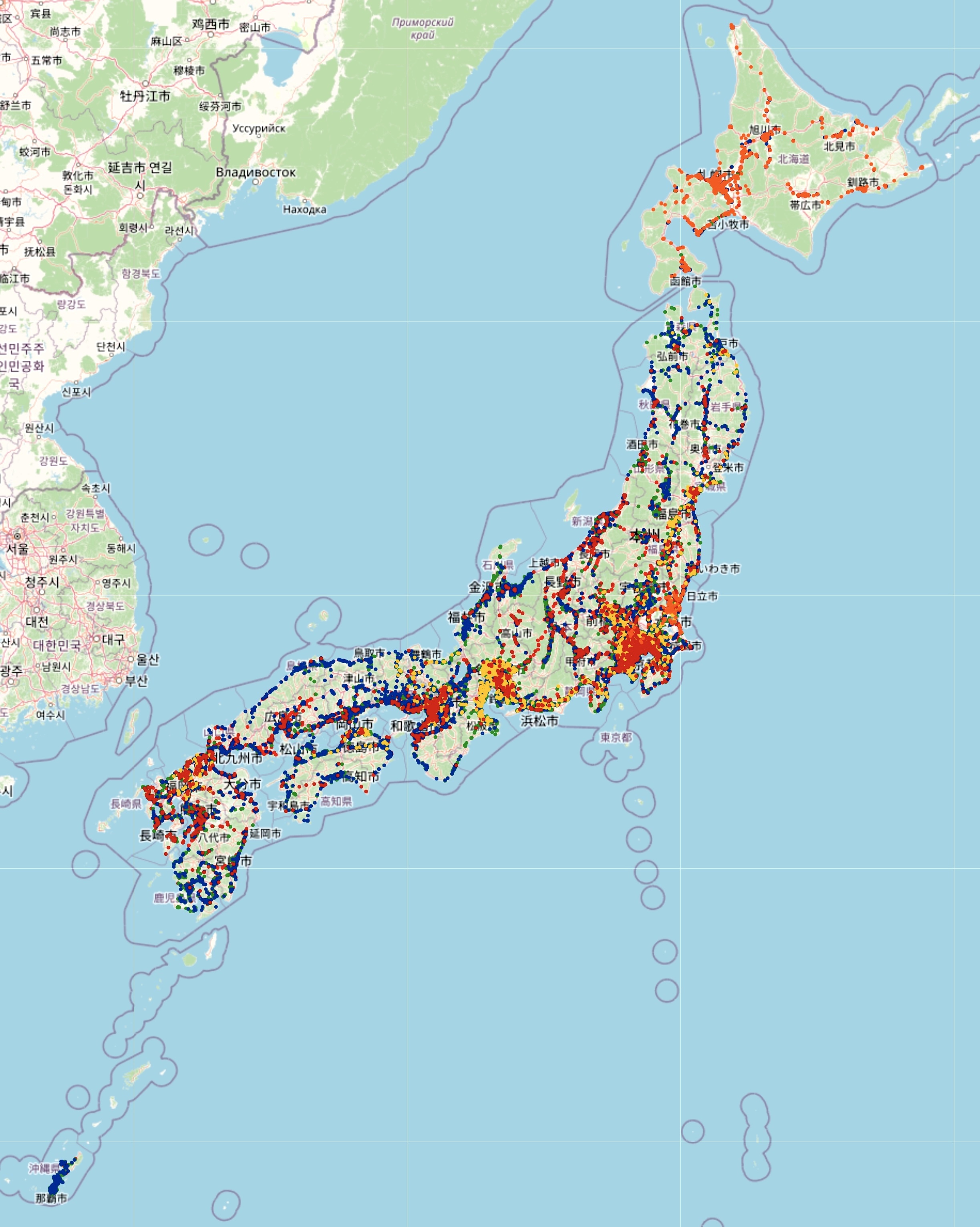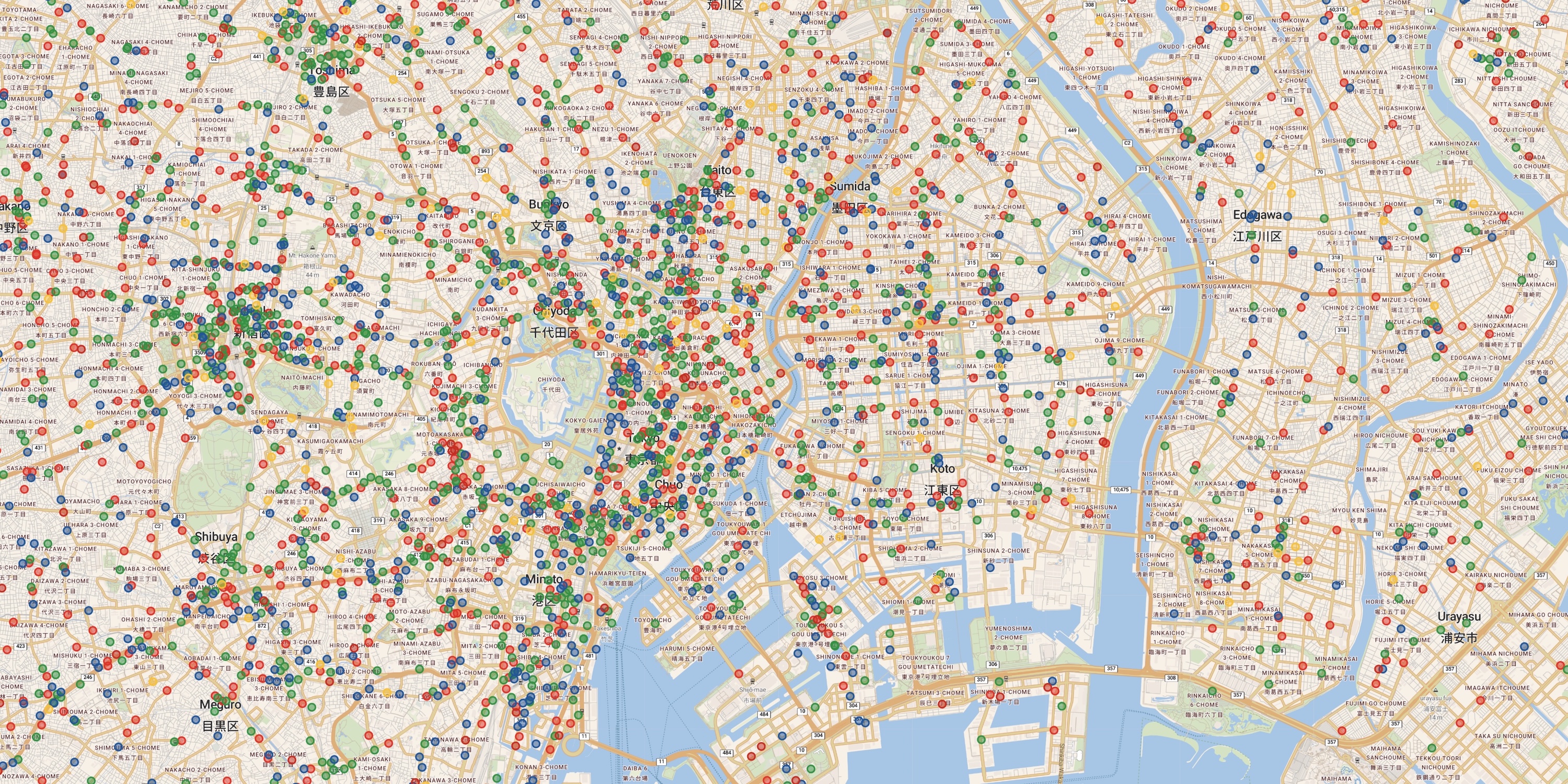 The locations of the convenience stores were obtained from the Homemate web site that allows you to search for retail stores throughout Japan.