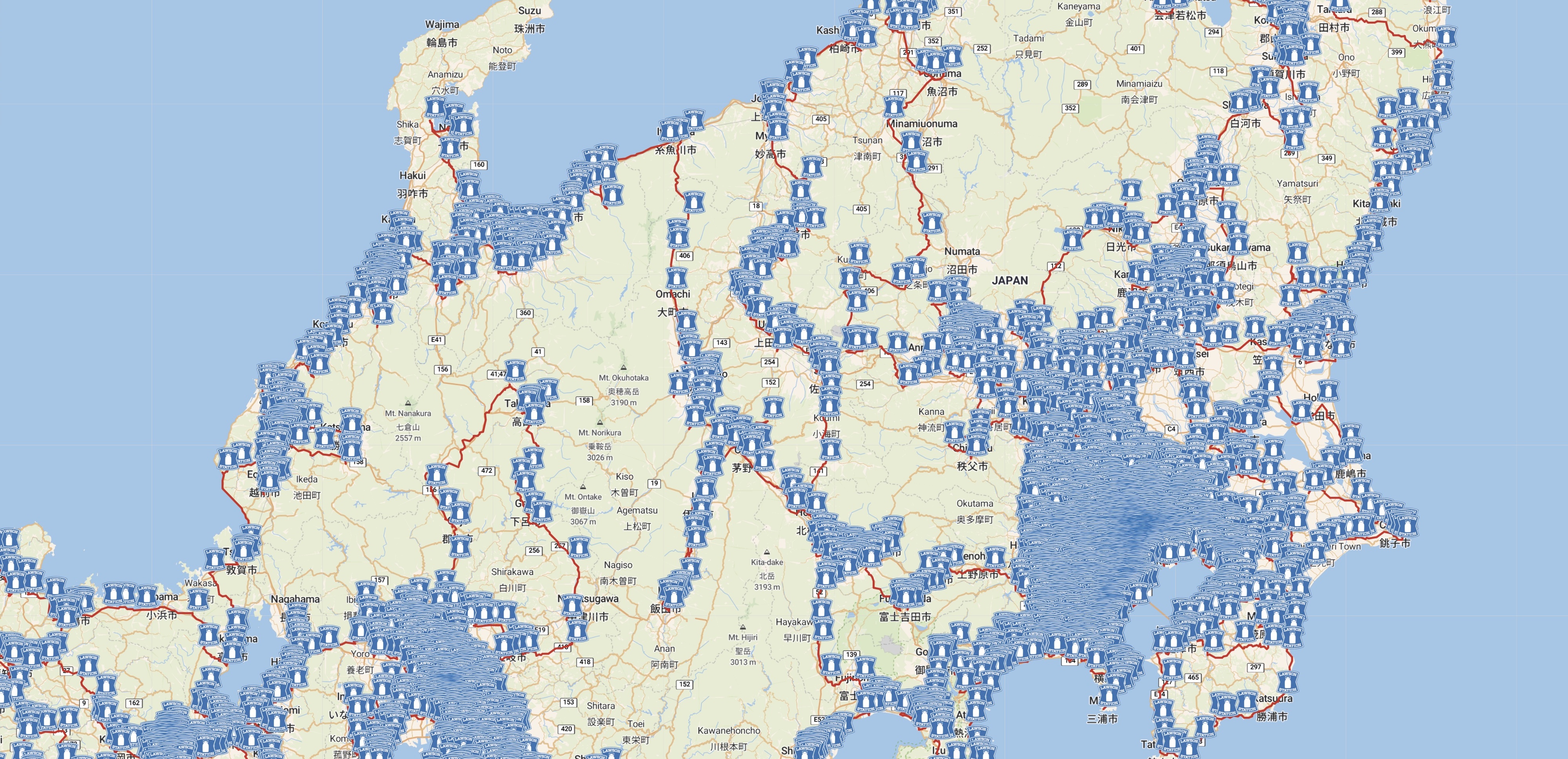 We obtained a list of 1204 stations from the official Michi-no-Eki web site. The latitude-longitude coordinates for the stations are given in the following file.