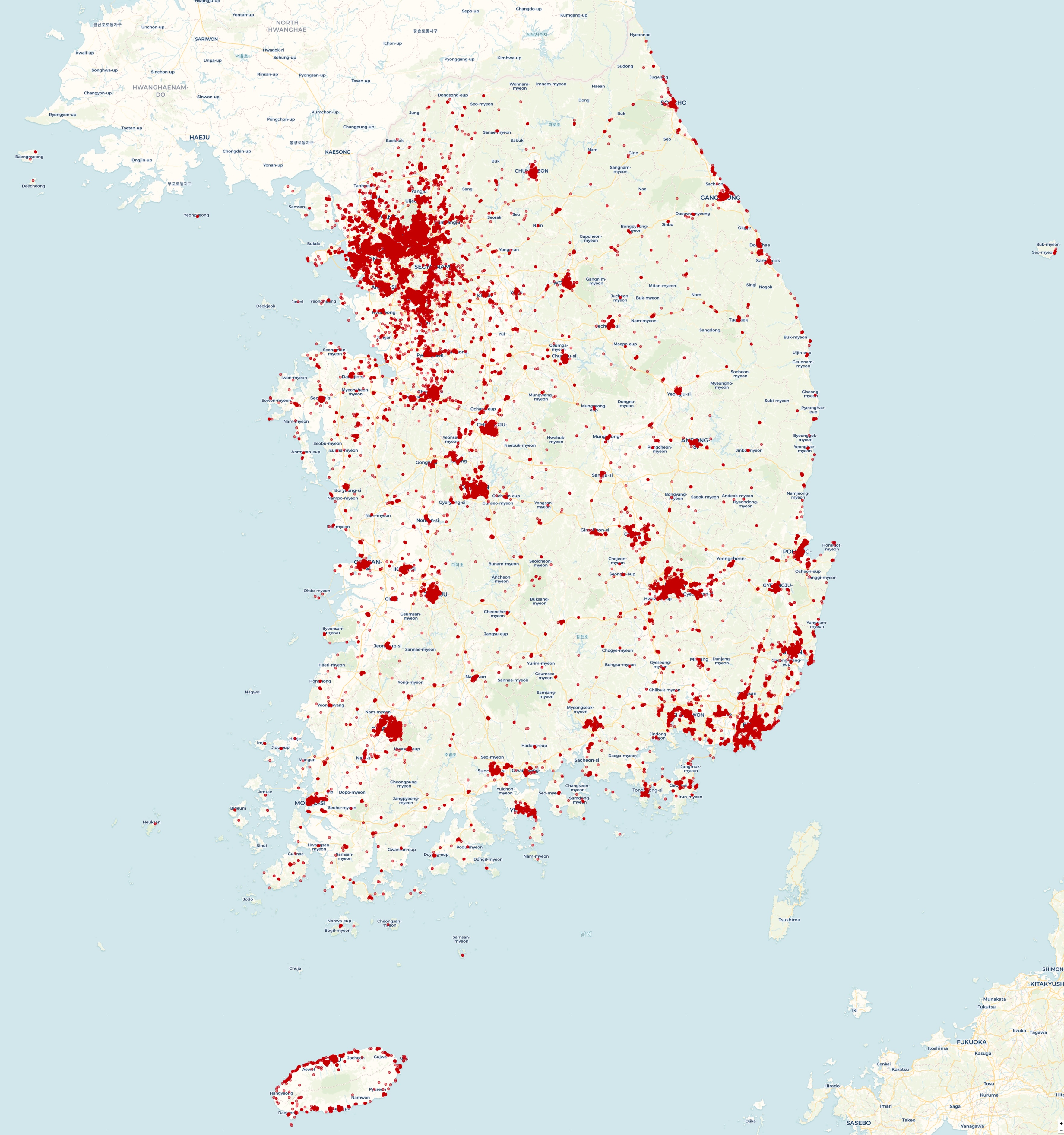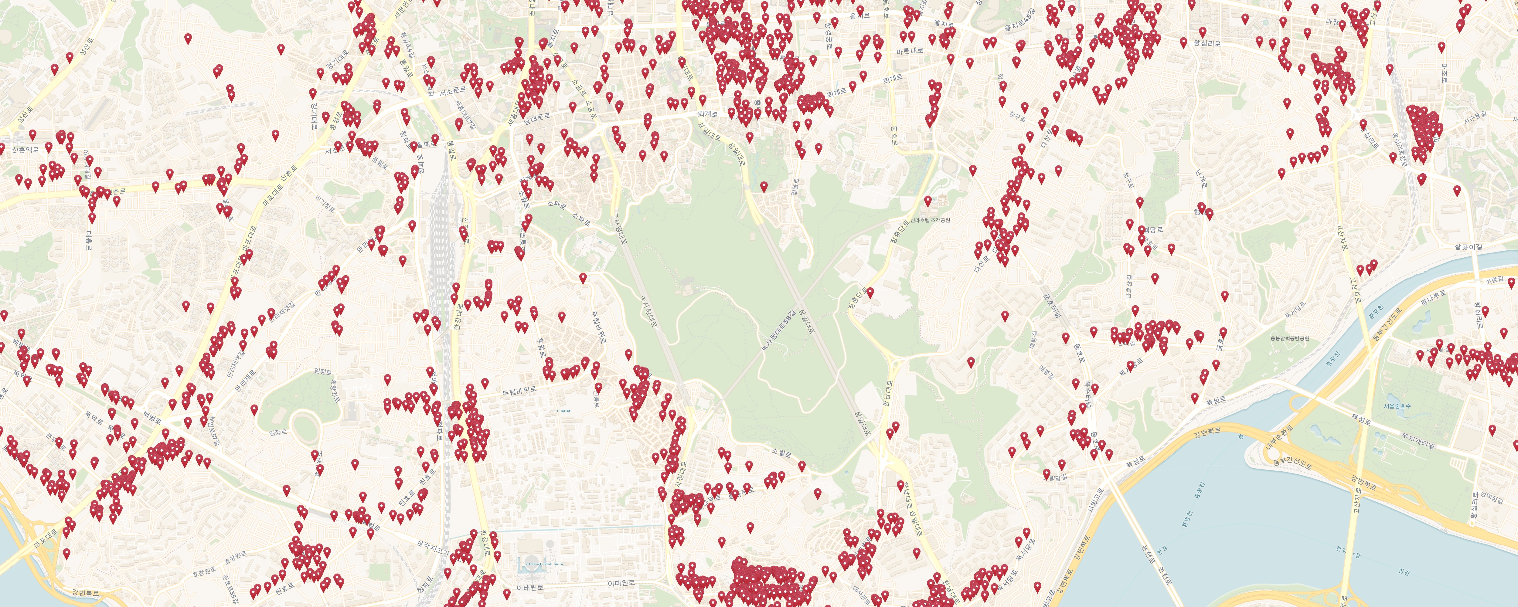The locations of the bars were downloaded from a database maintained by the Korean National Police Agency.