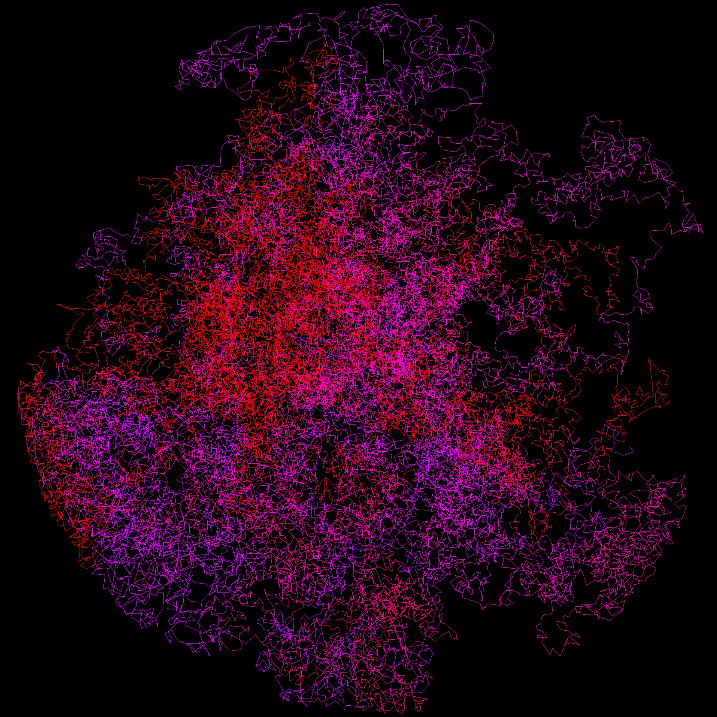 Unlike the tours for the smaller examples, this one may not be a shortest-possible route to visit the 250,000 stars. The tour's total length is 979419.1 parsecs, measured as described on the data page. We know there is no tour of length less than 979414.9 parsecs, so our route can possibly be improved by a further 4.2 parsecs. If you have a good TSP heuristic algorithm, please have a go at short-cutting the trip.