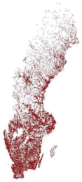In the Sweden TSP instance the city locations are specified by their latitude and longitude (scaled by 1000); the distance between the cities is the Euclidean distance rounded to the nearest integer (the TSPLIB EUC_2D-norm).