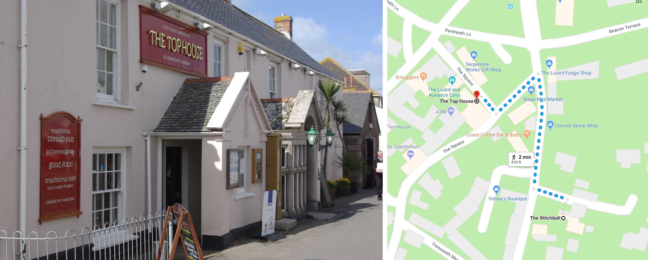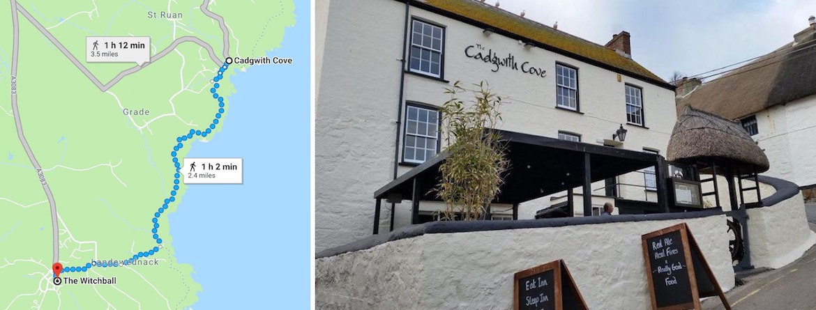 After wandering around all of the United Kingdom, we end up back in Cornwall at the Cadgwith Cove Inn for the 49,687th and final pint. To wrap up the tour, take a nice hour-long walk along the coast to return to the Witchball.
