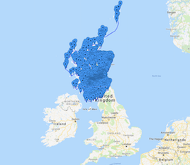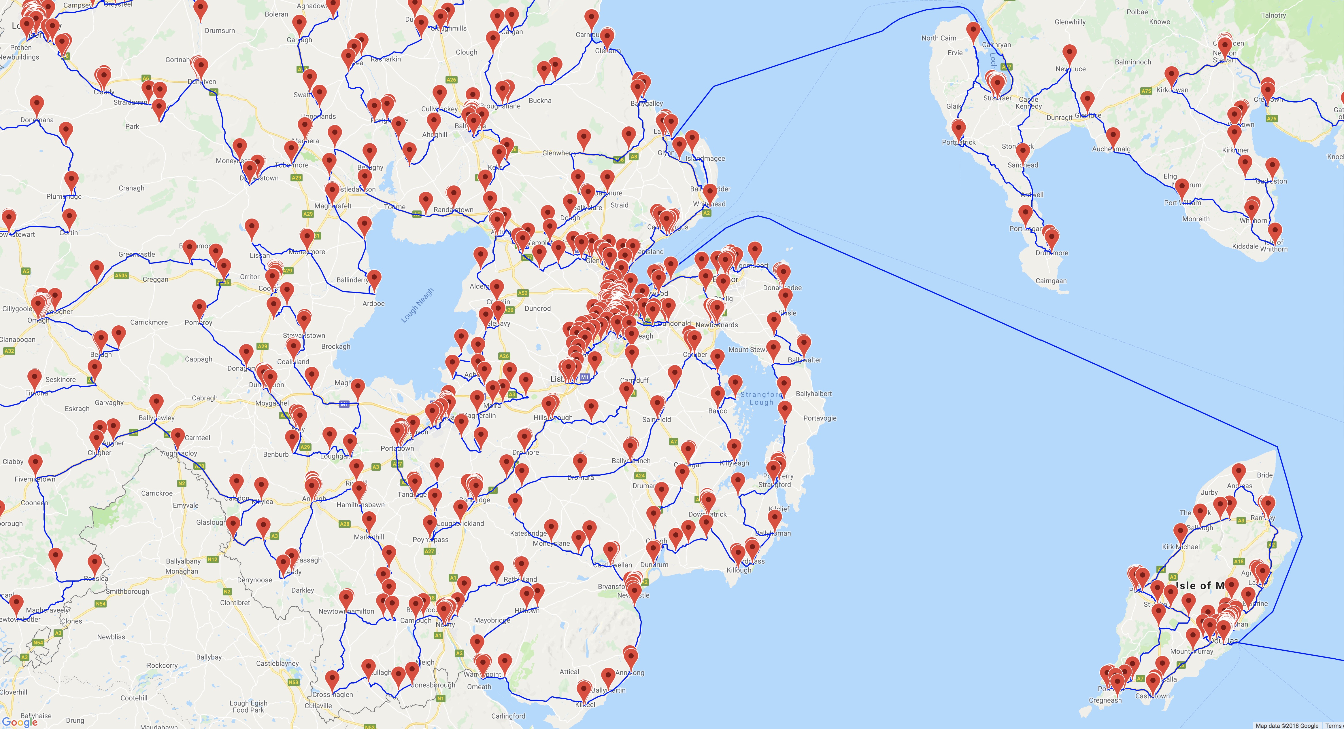 In 39 seconds you can see the tour sweep around the UK visiting the 49,687 stops.