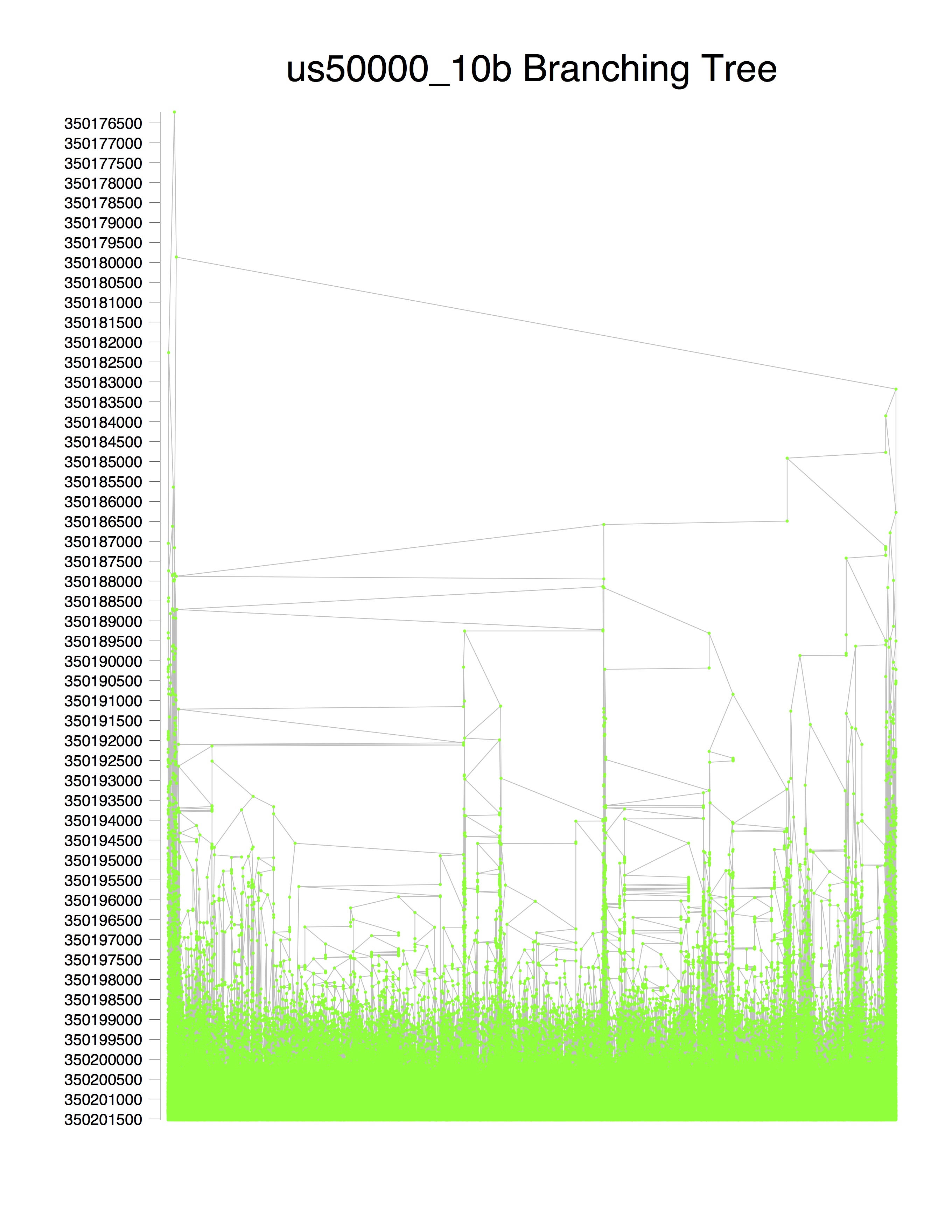 Click here to see a drawing of the search tree for the 49,603-point problem, where the position of a subproblem corresponds to the value of its fractional tour.