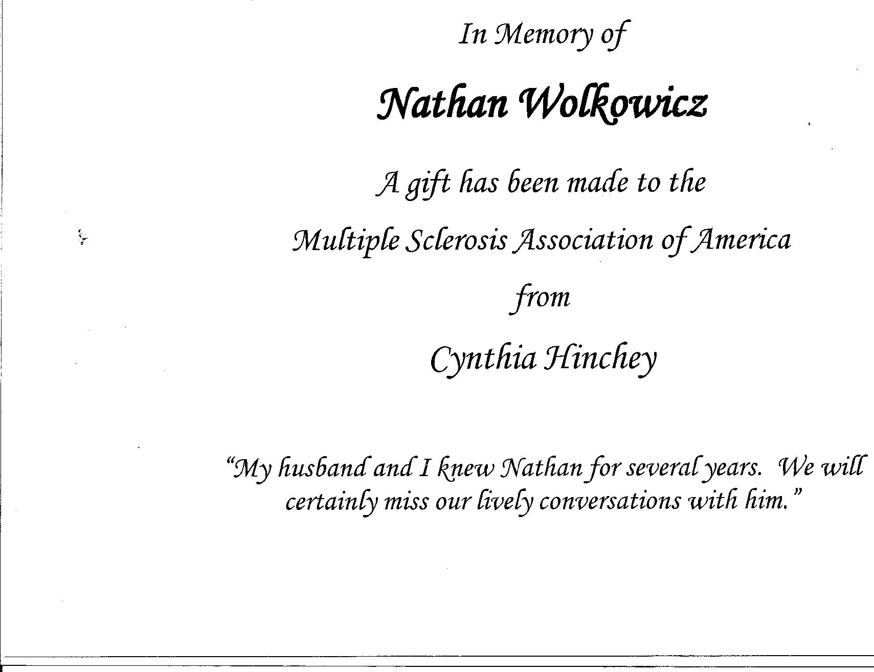 Nathan was heavily involved in the Multiple Sclerosis Association of