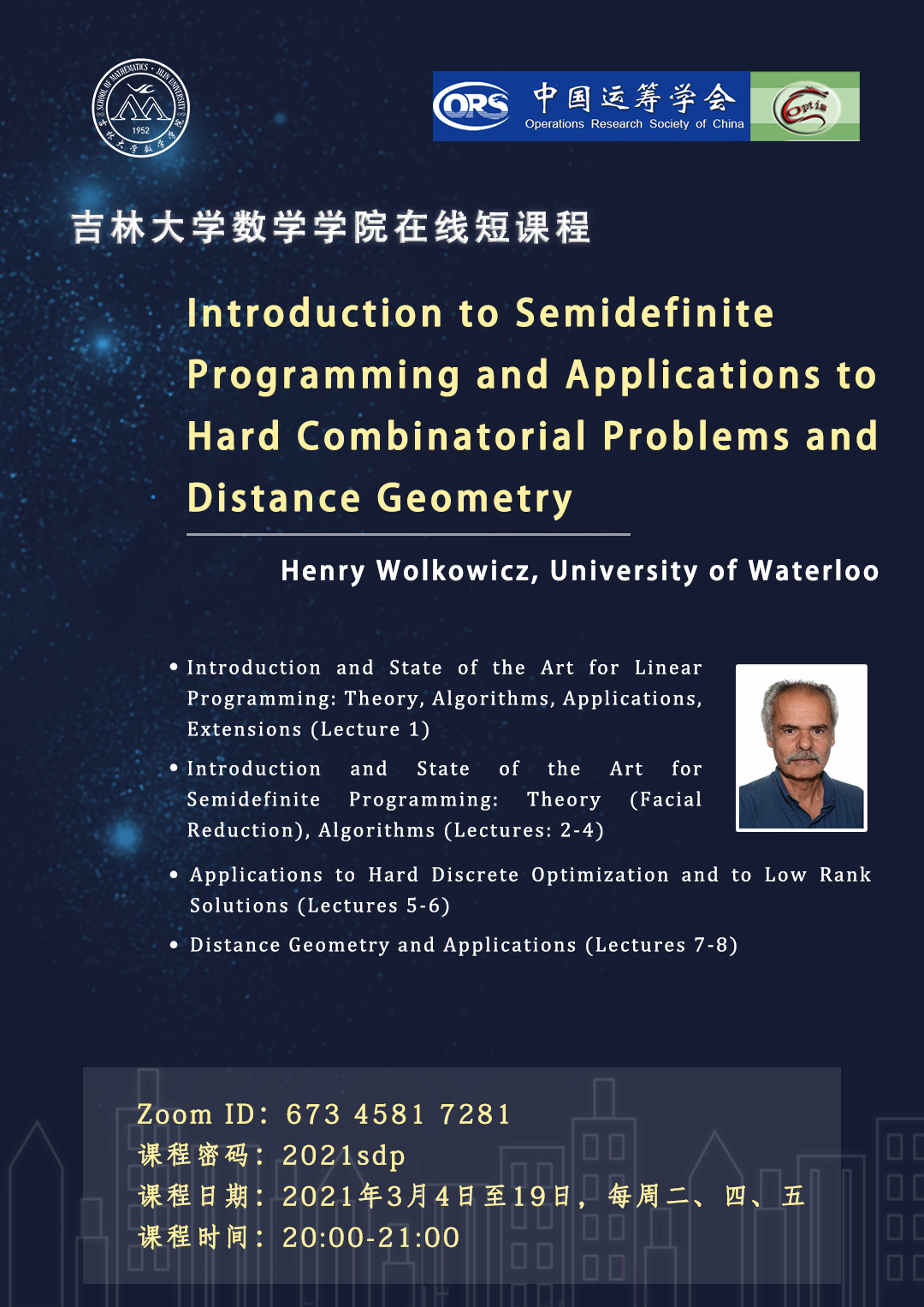 Organizers: Jein-Shan Chen, Jann-Long Chern, Antoine Deza, Tsung-Ming