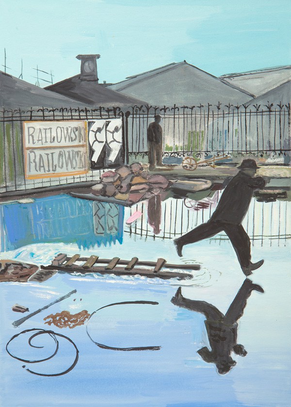 The accompanying paintings by Kalman — herself a patron saint of “the moments inside the moments inside the moments” and an unparalleled noticer of the magic in the mundane — reimagine the historical photographs through the raw material of Kalman’s art: that delicious dialogue between representation and response.