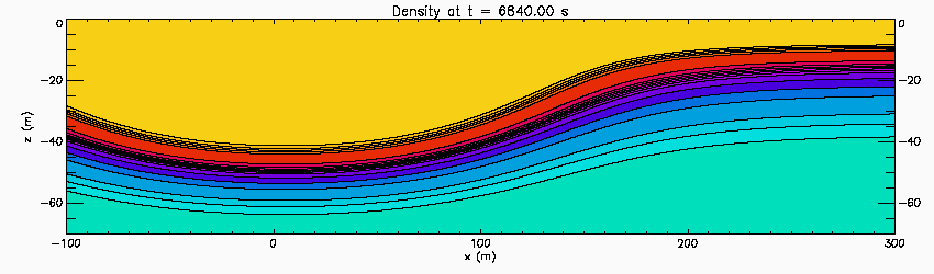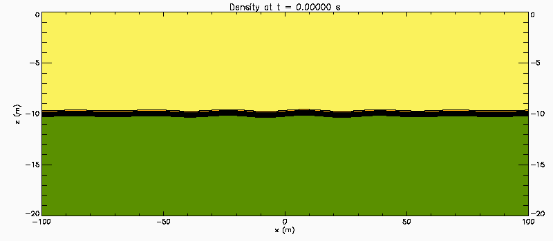 lower layer densities are 1010 and 990 kg/m^3. Kinematic viscosity