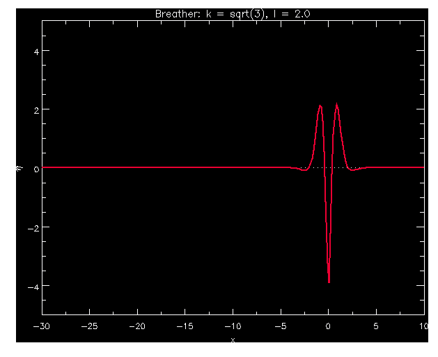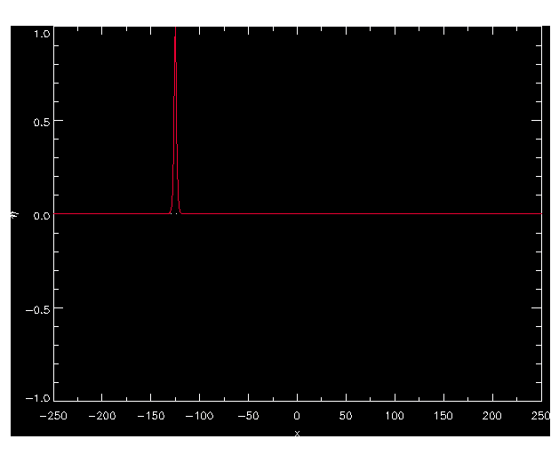 profile is sech(x-x0). Note non-dispersive wave front moving