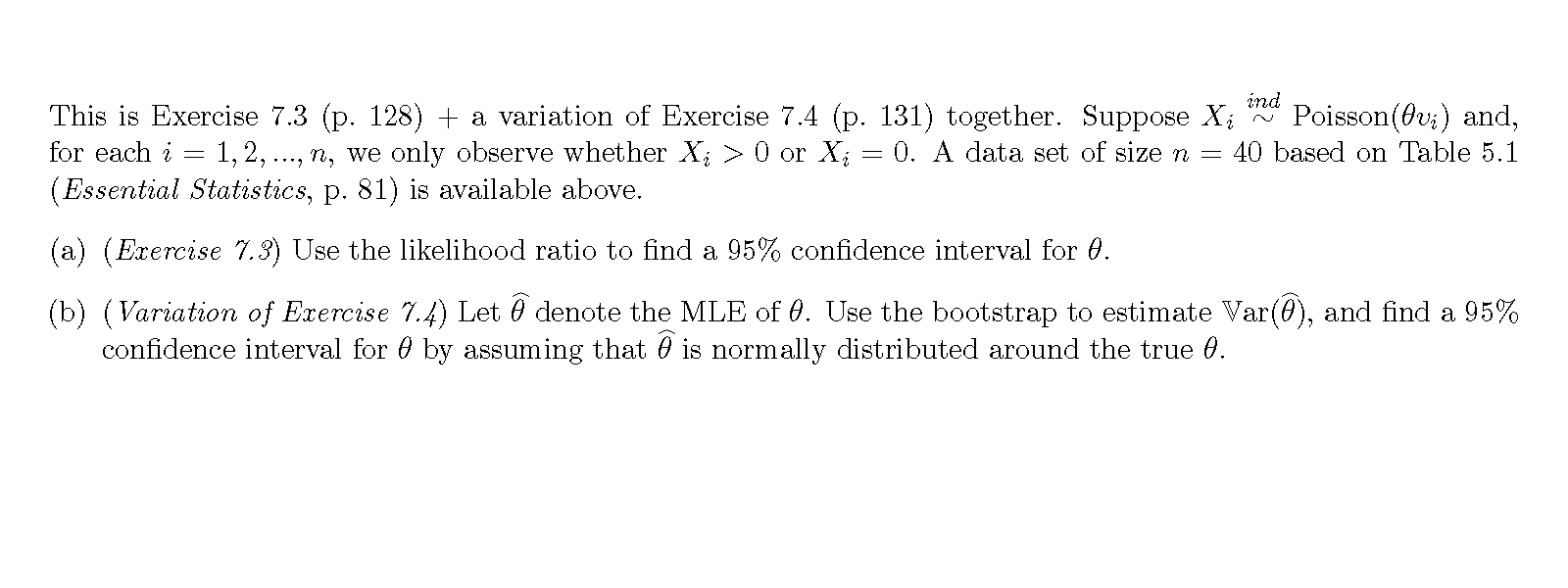 ( Data from Table 5.1 )R: read.table('https://www.math.uwaterloo.ca/~m3zhu/teaching/stat845/data/Data_cPois.txt',header=TRUE)