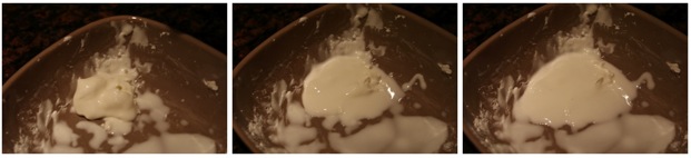Non-Newtonian fluids, somewhat loosely, are fluids that exhibit solid-like properties. More technically the stress in the fluid is no longer proportional to the rate of strain (in the tensor sense). In the above pictures we first put cornstarch powder in a bowl, then added water spoonful by spoonful, mixing as best we could with each bit of water added. We then scooped the material out and dropped it into the bowl shown above. In the picture on the left the material had just dropped and looks almost like a white rock. We then took pictures every ten seconds, showing only every second one. After twenty seconds (middle picture) the “rock” from the picture has begun to melt and the mixture looks kind of like an egg. Twenty seconds later there is essentially no sign of the rock and the material looks like a puddle. Technically one would say that the cornstarch mixture behaves like a solid in response to fast time scale forcing, and as a fluid to slow time scale forcing. A nice demonstration of this that is hard to show in pictures, is to take a puddle like in the rightmost picture and smack it with your hand (not too hard). Your hand feels basically as if it had hit a solid wall. If, on the other hand, you rest your hand on the cornstarch, the weight of the hand gradually lets it sink into the cornstarch. Cornstarch is thus called a shear thickening fluid.