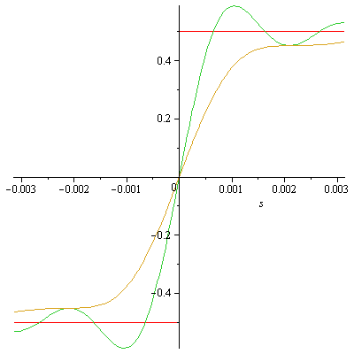n:=3000: plot([F(s),S(n,s),C(n,s)],s=-3*Pi/n..3*Pi/n);