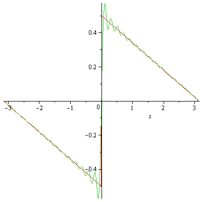 n:=30: plot([F(s),S(n,s)],s=-Pi..Pi);