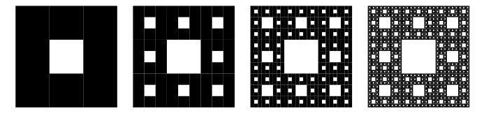 At the nth stage, each side of length 1/4n-1 is replaced by eight sides of length 1/4n as follows.
