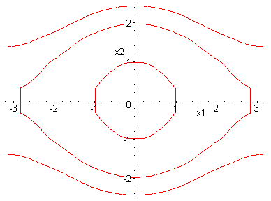x1-space. The trajectories connecting the saddle